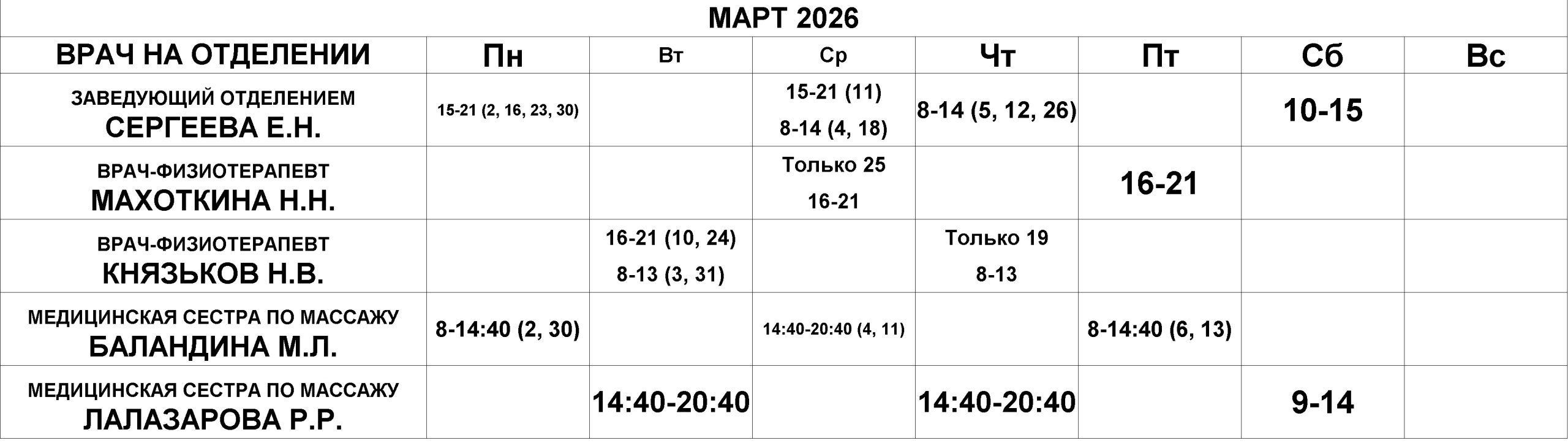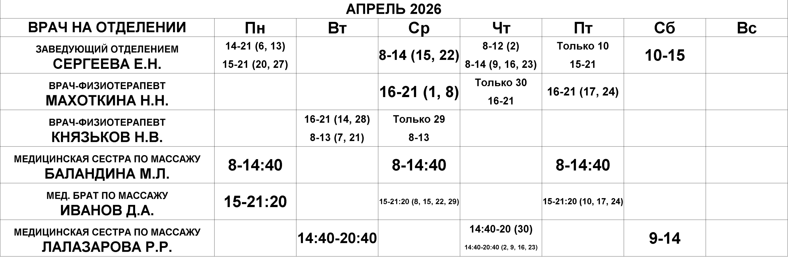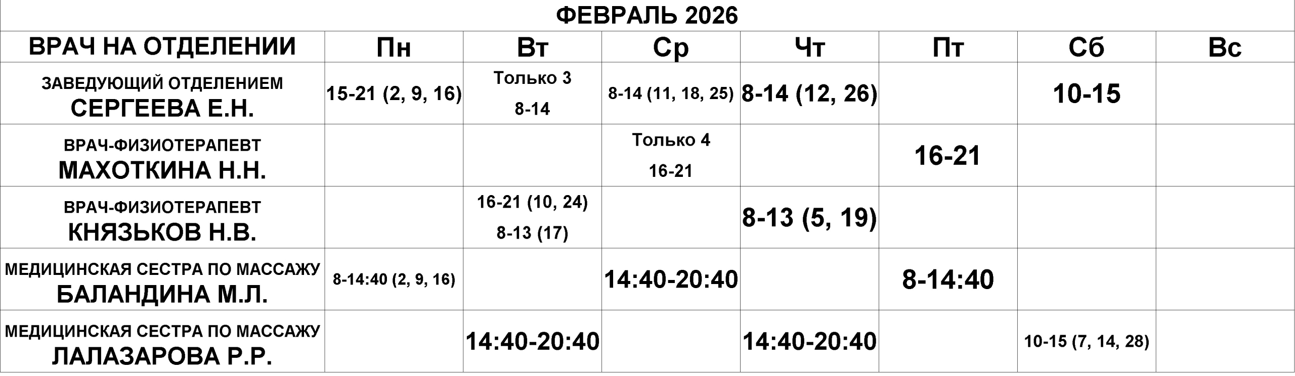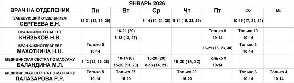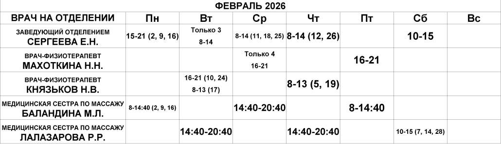 Физиотерапевтическое отделение — расписание
