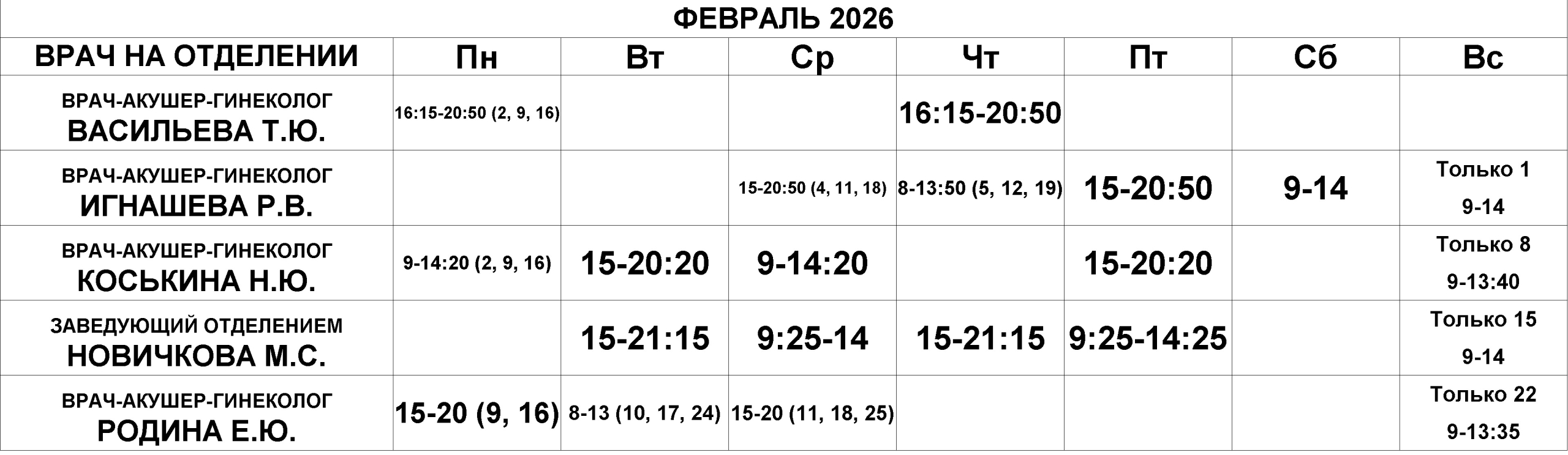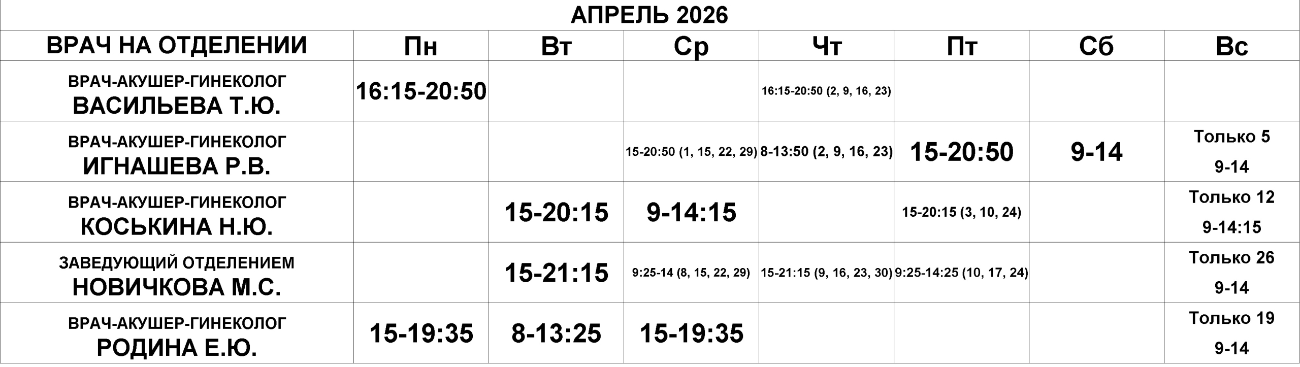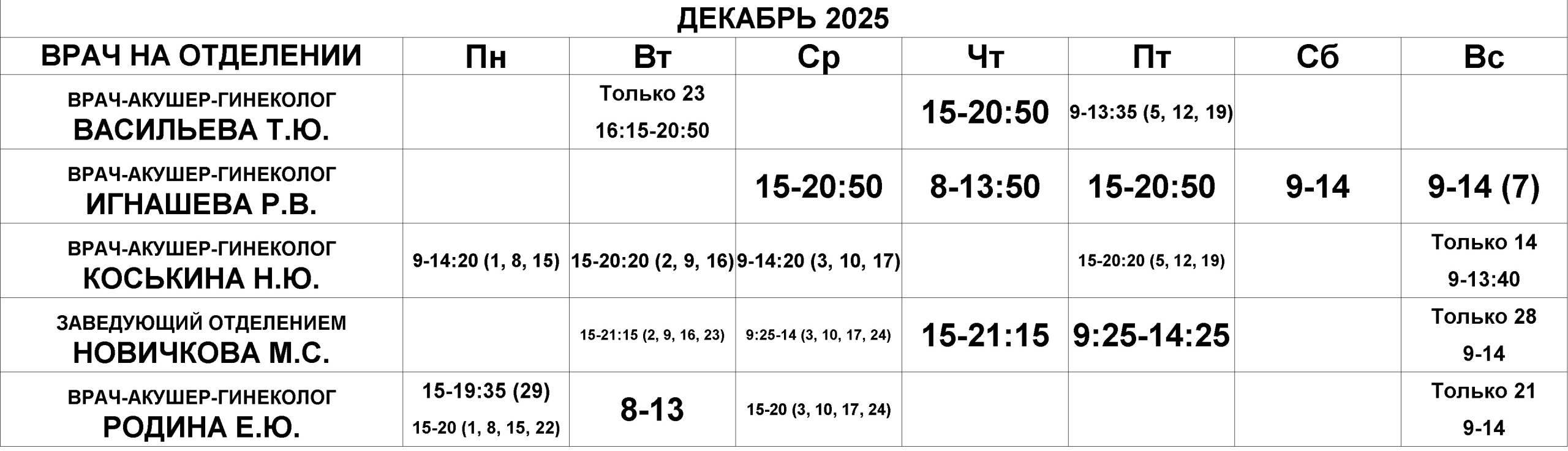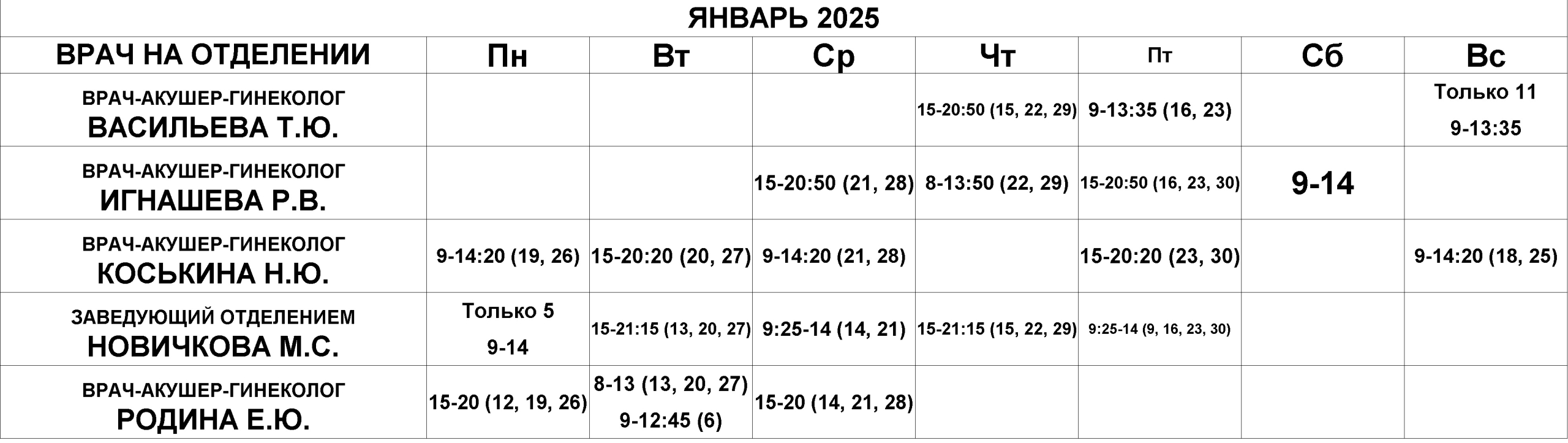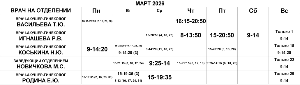 Гинекологическое отделение — расписание