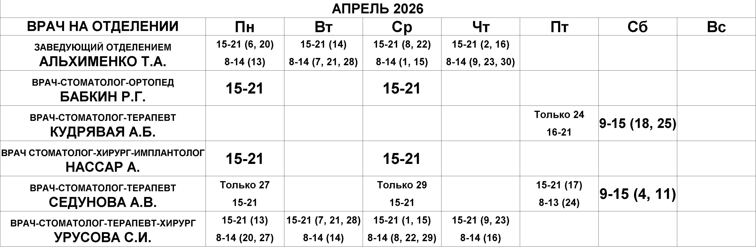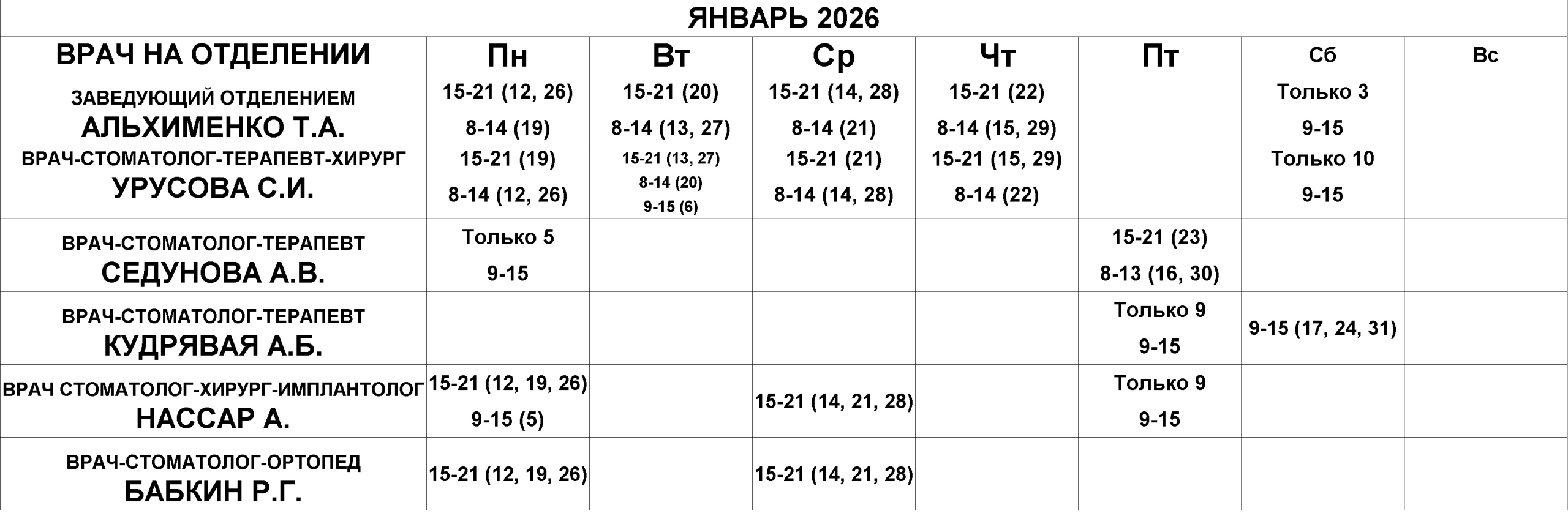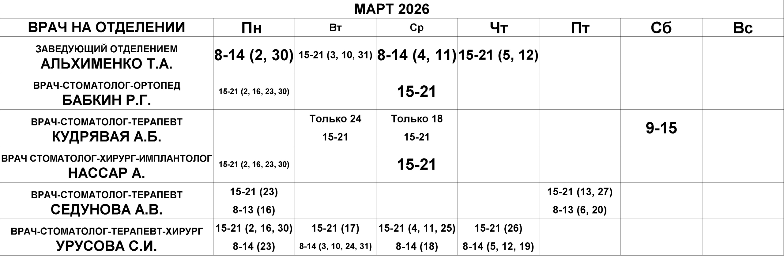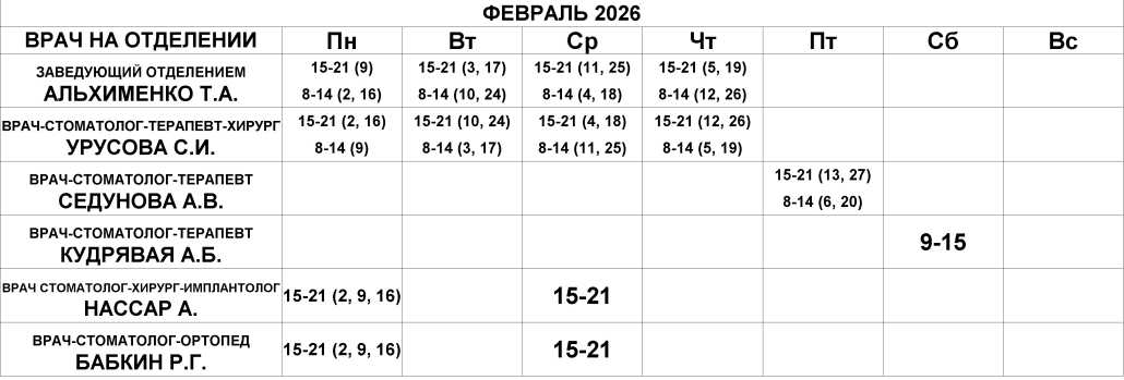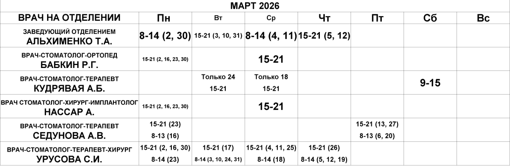 Стоматологическое отделение — расписание
